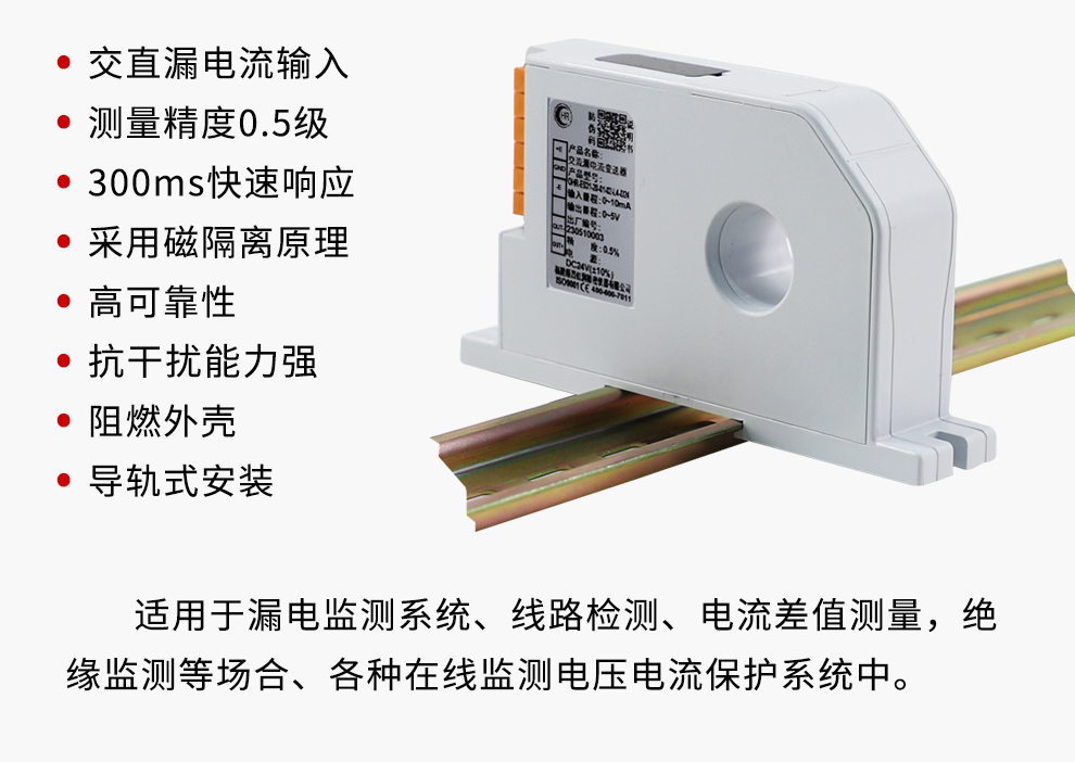 虹潤(rùn)公司是專(zhuān)業(yè)生產(chǎn)電流傳感器的國(guó)家專(zhuān)精特新“小巨人”企業(yè)。生產(chǎn)的交流/直流漏電流變送器,具有交直漏電電流輸入、高精準(zhǔn)測(cè)量、響應(yīng)速度快、高抗干擾、全隔離設(shè)計(jì)等特點(diǎn)。產(chǎn)品獲得一種交流信號(hào)變送器、交直流信號(hào)轉(zhuǎn)換電路、基于DCS技術(shù)的盤(pán)裝式三相電量表等3項(xiàng)國(guó)家發(fā)明專(zhuān)利,主持起草工業(yè)過(guò)程控制系統(tǒng)用模擬輸入兩位或多位輸出儀表國(guó)家標(biāo)準(zhǔn),直流漏電流傳感器規(guī)范、通信系統(tǒng)多通道數(shù)據(jù)采集控制終端規(guī)范等2項(xiàng)軍用標(biāo)準(zhǔn),以及現(xiàn)場(chǎng)設(shè)備集成等5項(xiàng)智能制造國(guó)家標(biāo)準(zhǔn),參與國(guó)際5G標(biāo)準(zhǔn)制定。產(chǎn)品廣泛應(yīng)用于工業(yè)自動(dòng)化、電力、新能源、科研實(shí)驗(yàn)基礎(chǔ)設(shè)施等需要電力參數(shù)監(jiān)測(cè)的領(lǐng)域。